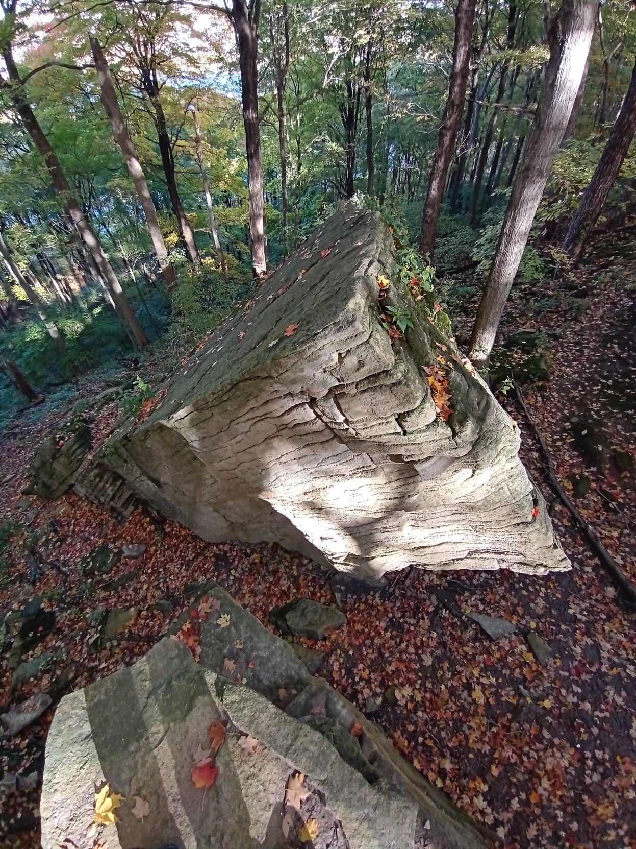 Walking along the Niagara Escarpment at Woodend Conservation Park. Here's a chunk of the escarpment cracked off and slowly making its way down. Time will tell where it will eventually end up.