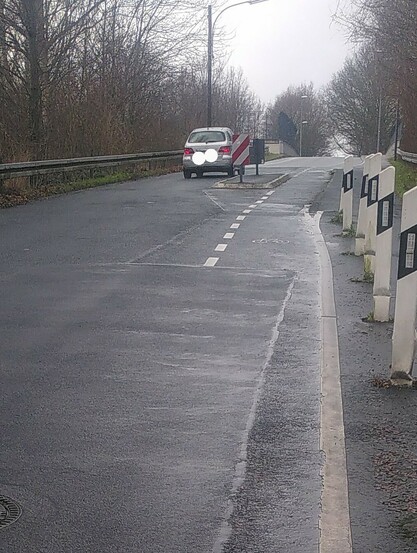 Eine offensichtlich unsichere Radfahrerin (verkrampfte Haltung, viel zu nah am Bordstein, zittrige Fahrlinie) kam mir auf der #BrückedesGrauens in @koeln entgegen. Das nähernde Auto überholt sie IN DER ENGSTELLE!