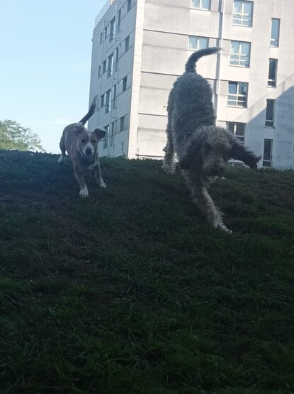 Me han hecho una foto muy chula este mediodía. A la sombra de un árbol descansando después de jugar con mis amiguitos #influencerdelfedi #bruma Que calor que hace...