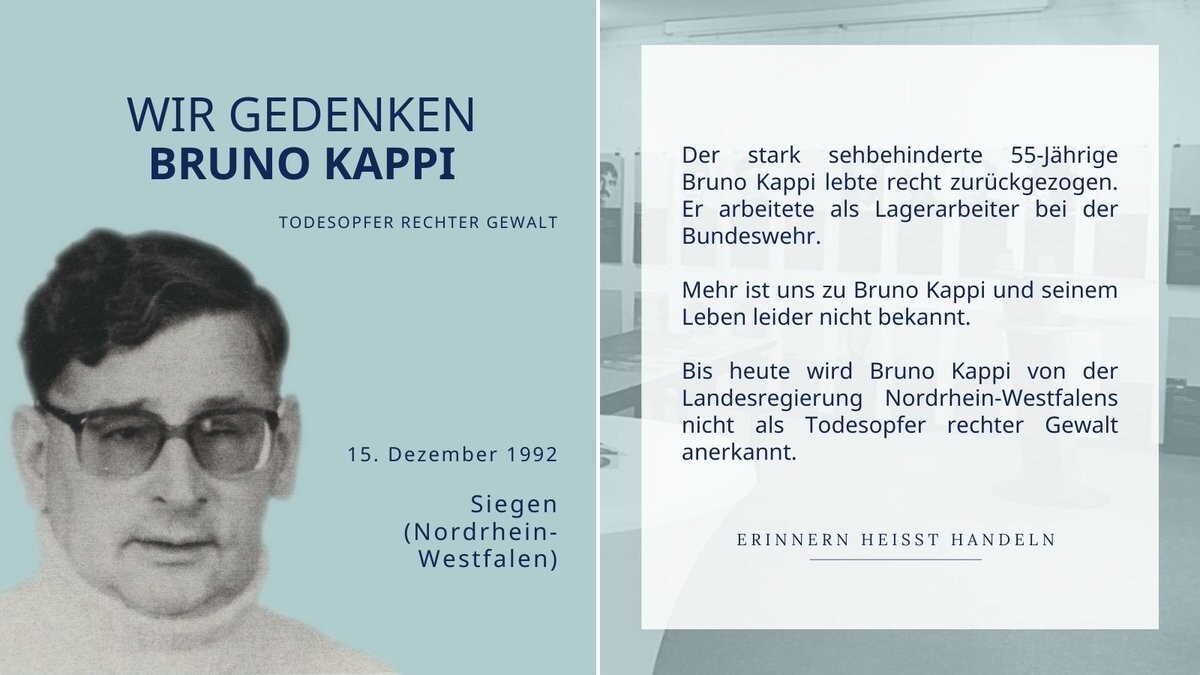 #KeinVergessen: #BrunoKappi wurde auf dem Weg zu seiner Arbeitsstelle am 15.12.1992 am Einkaufszentrum #Weidenau in #Siegen/#NRW von zwei rechten Skinheads erschlagen.