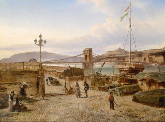 Historical view of Buda in the painting by the Dutch painter Elias Pieter van Bommel (1819-1890). Buda was the historic capital of the Kingdom of Hungary and since 1873 has been the western part of the Hungarian capital Budapest, on the west bank of the Danube.