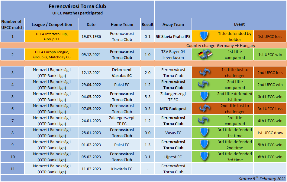 #Ferencváros extending their so far longest #UFCC title series to a 3rd defence in the #BudapestDerby vs @ujpestfc1885 with a 3-1 win. @Fradi_HU is now the 2nd best 🇭🇺 hungarian team (behind @MTKBudapest) in the #UFCC alltime ranking at 161st position with a balance of 6W-1D-3L