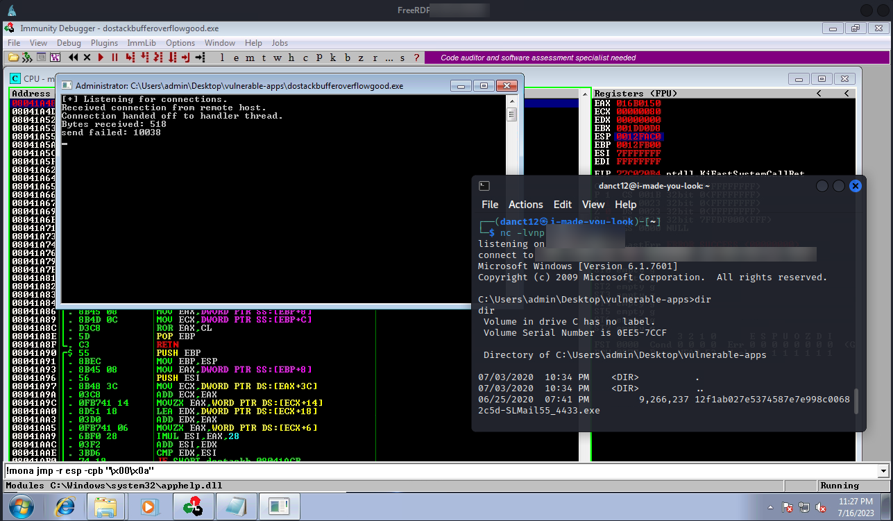 #bufferoverflow #binaryexploitation #infosec #offsec #WindowsExploitation #appsec