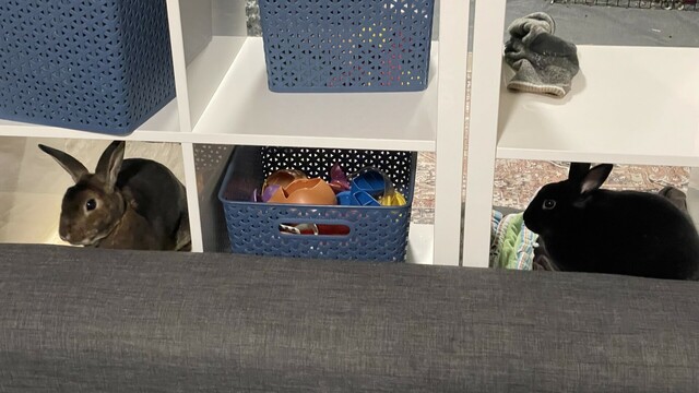 Working on growing the #rabbit community on #mastodon. #Bunny photos and #BunnyToots can start here. Meet Acorn and Laurel my two rescue #rabbits I’ve been loving since January 2020. They are 2.5 years old and loads of fun and joy. #rabbitsofmastodon #houserabbit