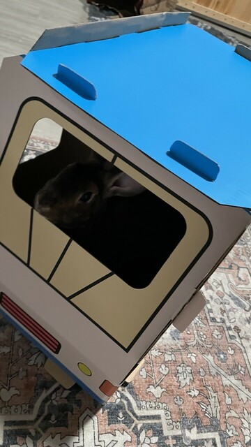 Dad moved us! We're settling into the new house. Nanners make things okay, I guess. #BunnyToots #SnickersAndCocoa #RabbitsOfMastodon #Rabbit