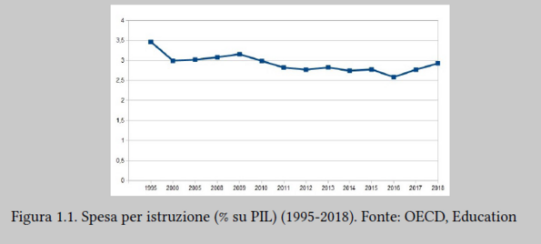 scuola si è ridotta di quasi 0,6 punti percentuali (un calo di oltre il 18%) (OECD 2021).