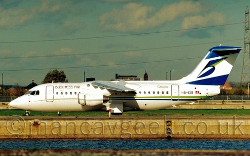 HB-IXB, British Aerospace 146-200A, Business Air, on a rare sunny day at London City, 1st November 1994.