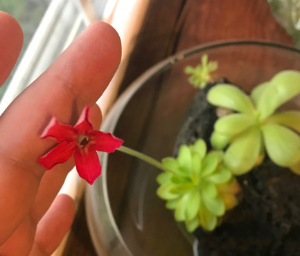 Pinguicula laueana is flowering. This is the only butterwort with red flowers, rather than the usual purple or white.