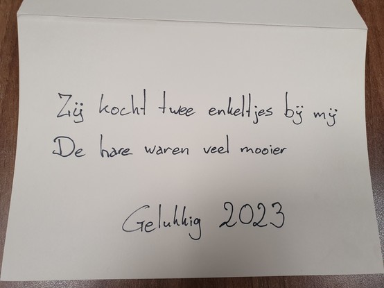 Een collega schreef dit korte gedichtje op zijn nieuwjaarskaart in de kantine en ik vond hem mooi!