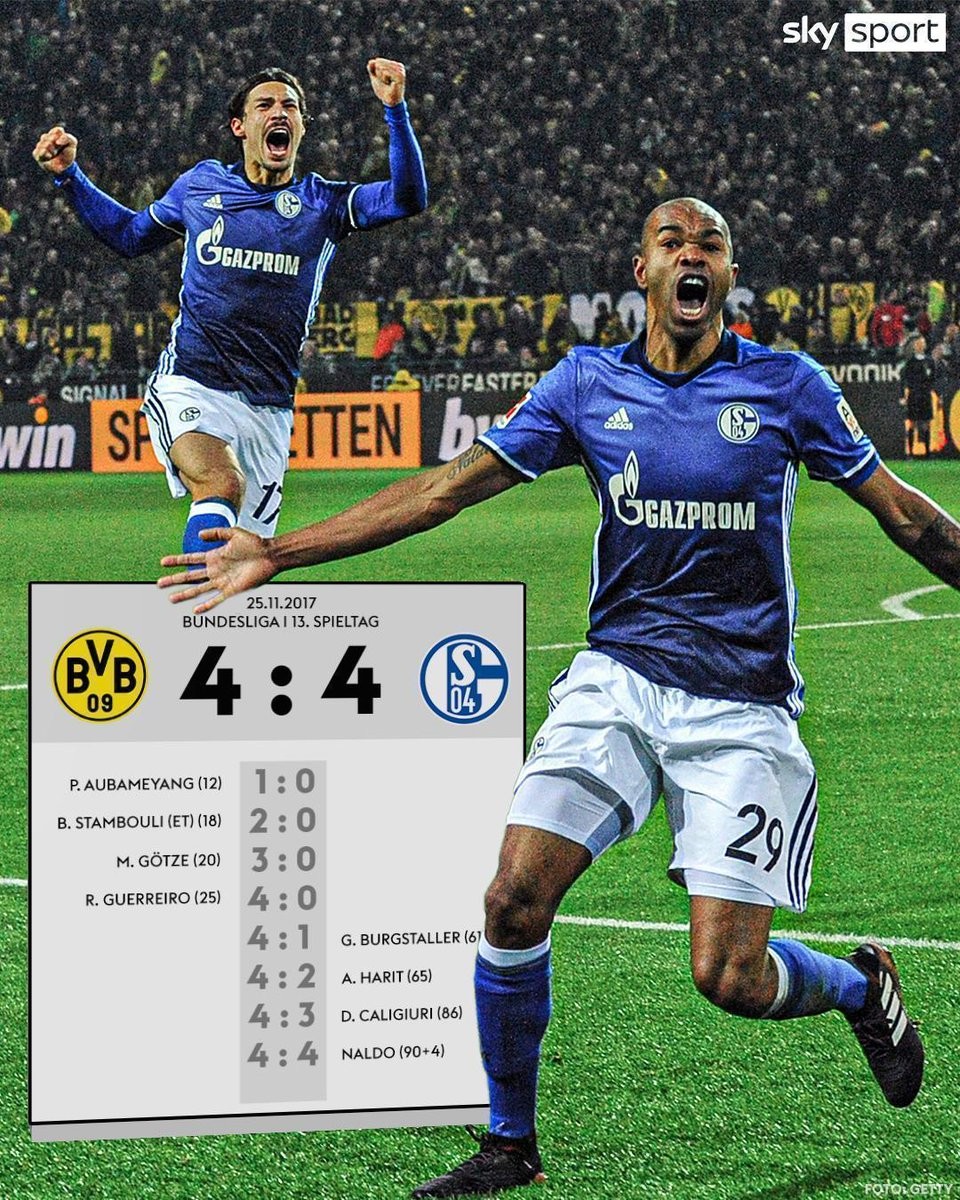 #OnThisDay in 2017: Das wohl irrste Ruhrpott-Derby der Geschichte. Schalke holt unter Domenico Tedesco einen Vier-Tore-Rückstand in Halbzeit zwei auf! 🔥