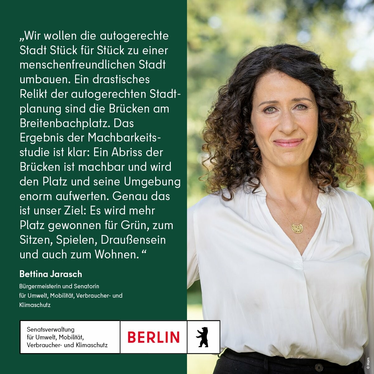 Ich freue mich, dass die Machbarkeitsstudie grünes Licht gegeben hat, dass die #Breitenbachplatzbrücke abgebaut werden kann und das die nächsten Schritte vorbereitet werden können. Damit wird mein damaliger Antrag & Beschluss der #BVVCW weiter umgesetzt: