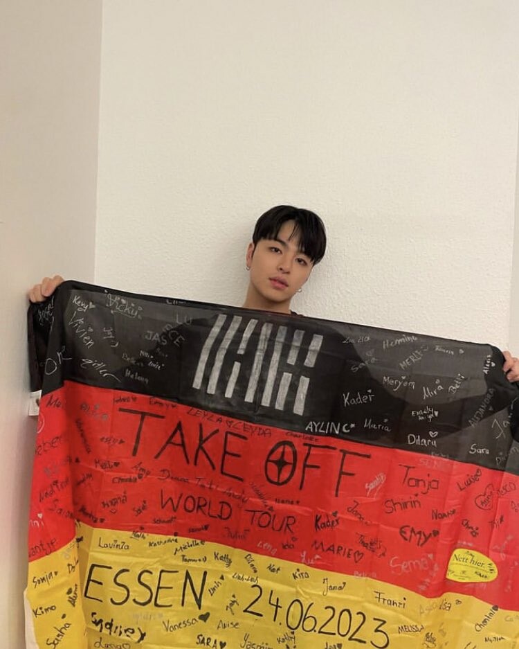 have fun in italy :ahyeinwave:(the flag was given by fans yesterday!)