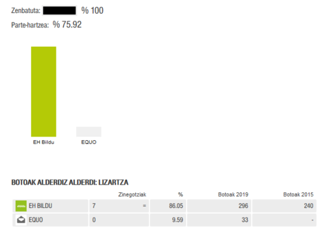 Ba Deustuko ATAk 33 boto lortu ditu Lizartzan. 0 zinegotzi dira, baina horrela hasten dira gauzak.