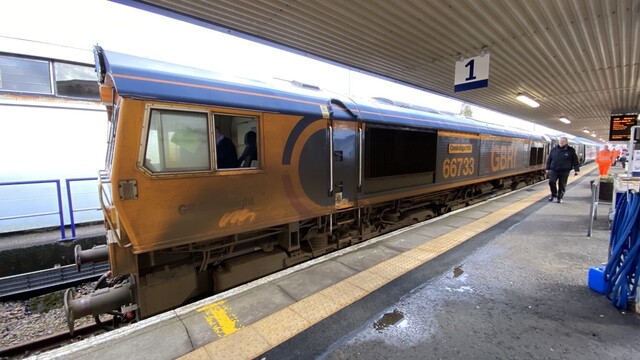 You really realise how small the British loading gauge is when you notice that the driver’s cab on a locomotive is at platform height. #train A class 66 pulling the #CaledonianSleeper into Fort William this morning.