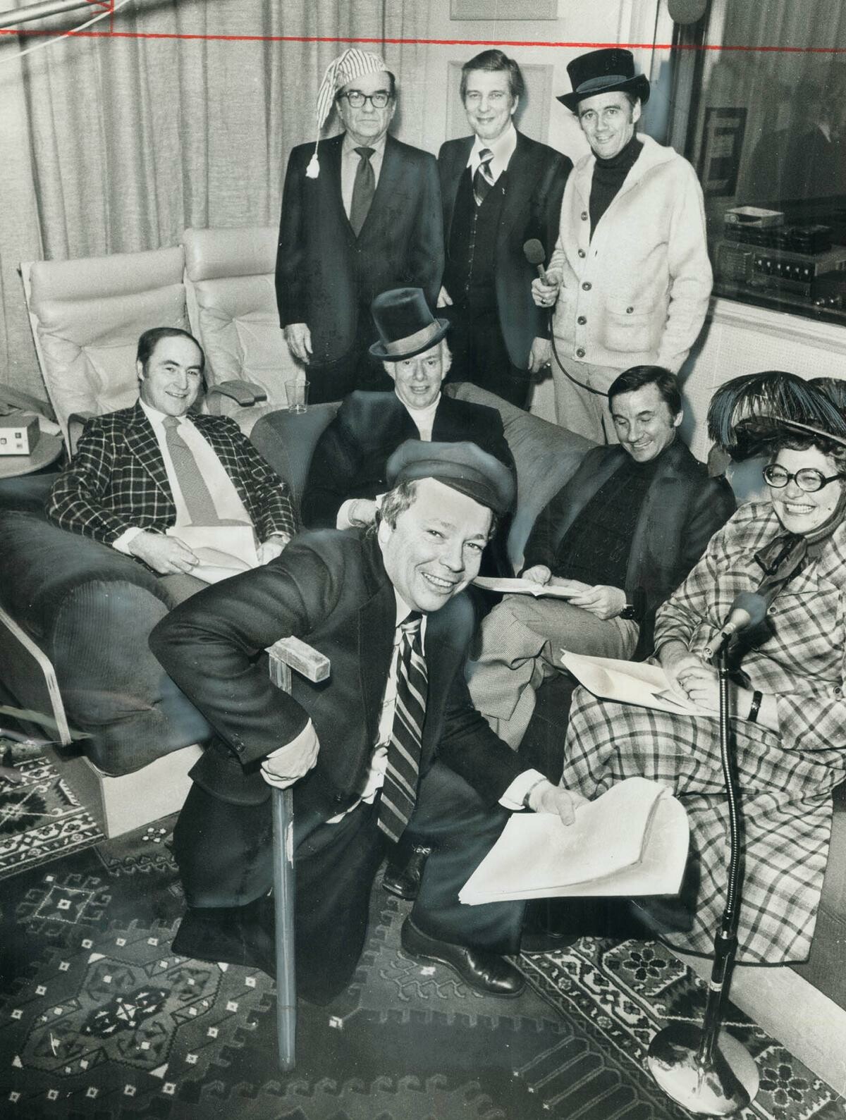 It was a star-studded cast for A Christmas Carol in 1975. Playing various parts in the television movie were hockey legend Red Kelly (left), Toronto Mayor David Crombie (with cane), Pierre Berton (with top hat), former MLA Juudy LaMarsh & newscaster Lloyd Robertson (Centre)