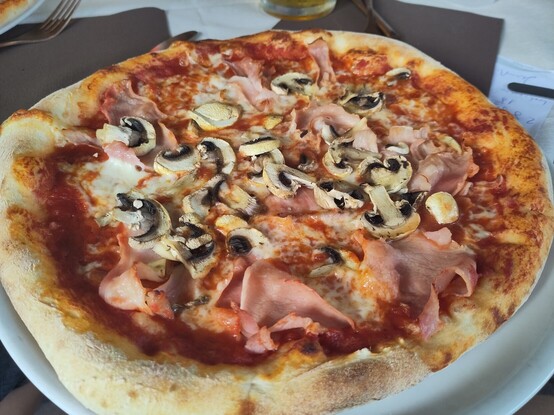 Pizza Prosciutto Funghi in #Cannobio in der Pizzeria #Pizza L'Imbuto. Mega gut 10/10!