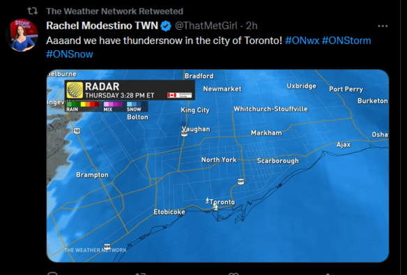 Trying to get South Korea on 15m FT8 and my LIGHTNING ALERT app sounds (35.6km away)! Fortunately it's still far from me. Lightning and thunder ARE a thing during certain kinds of snow storms. Always fun to see and hear... as long as your antennas are unplugged. #HamRadio #CANWARN