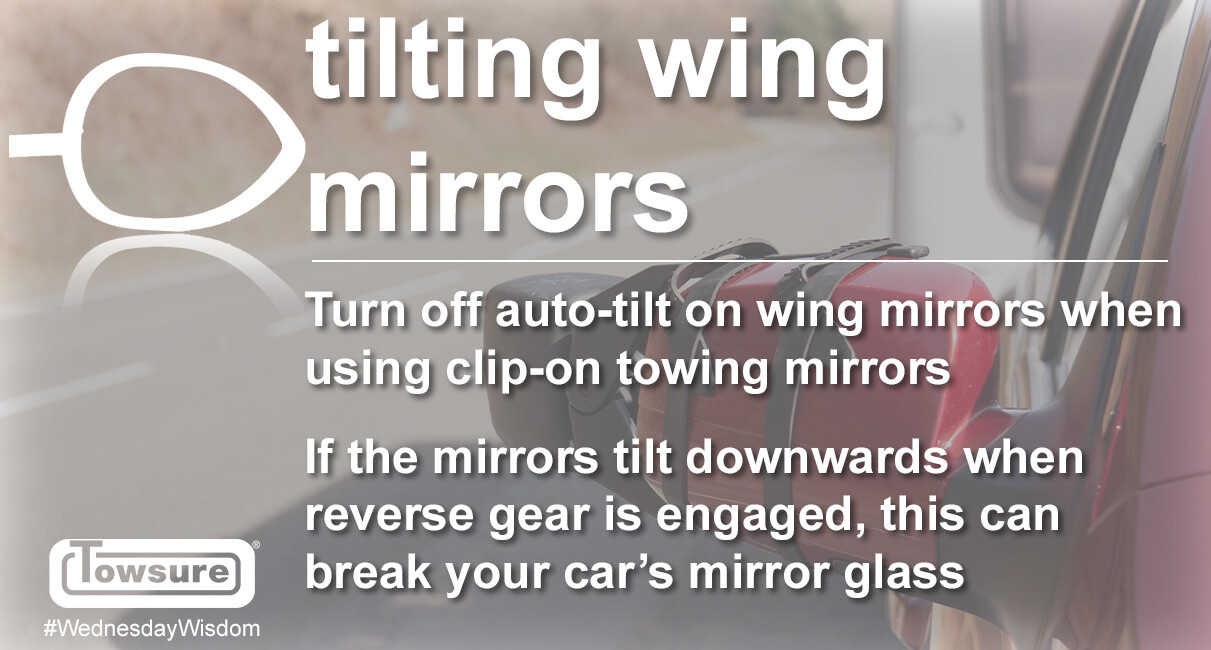 Turn off auto-tilt on wing mirrors when using clip-on towing mirrors. If the mirrors tilt downwards when reverse gear is engaged, this can break your carโs mirror glass