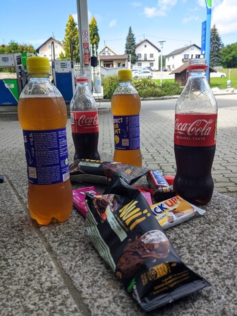 Wenn nach 80km endlich de erste Tankstelle kimt und dir de Riegel ausgangen sand... 🤣