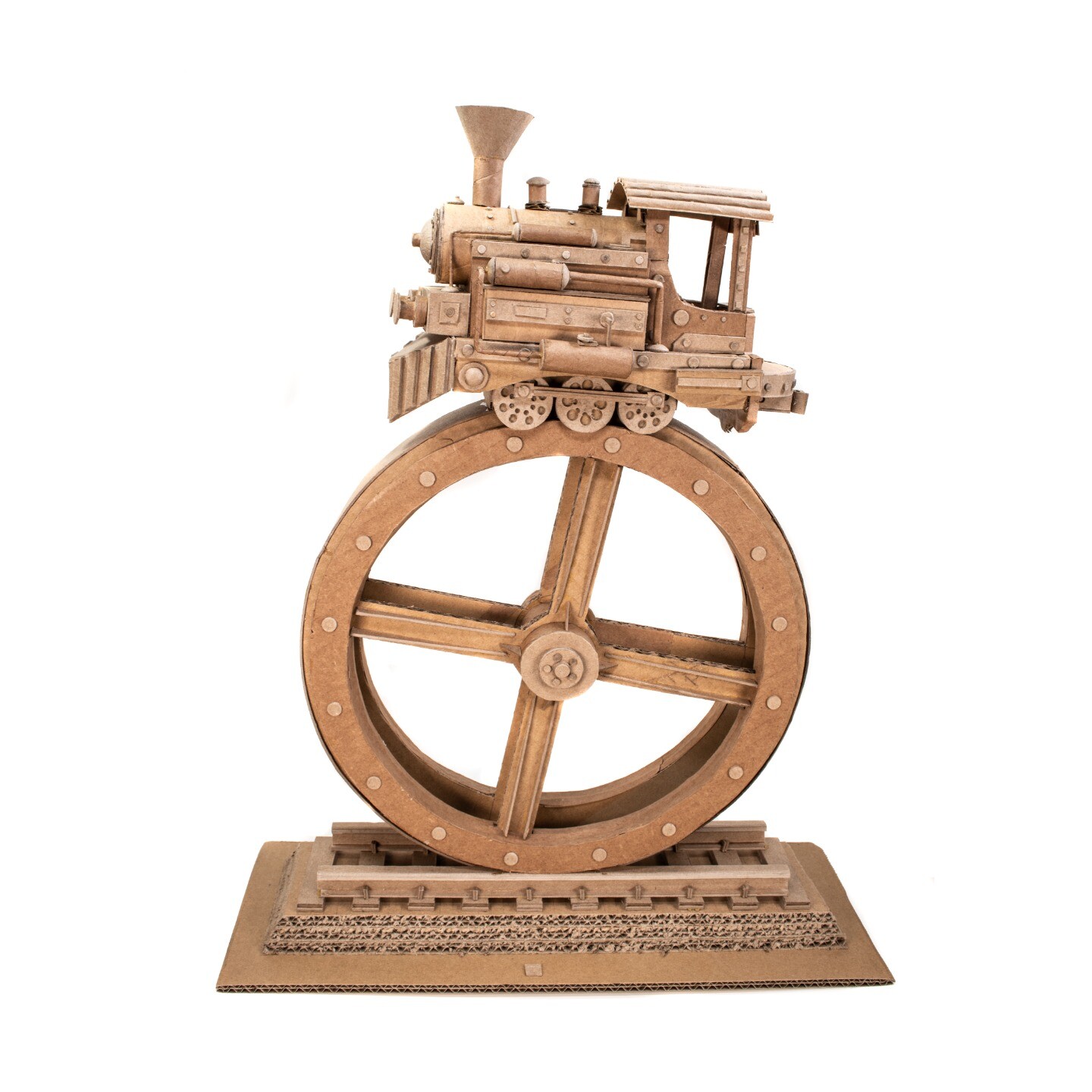 Altitudinous Anticyclonic Monowheel Steamwagon. Cardboard, 18in H