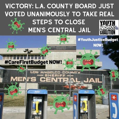 TODAY WE WON-L.A. County Board of Supervisors Voted Unanimously to Take Real Steps to CLOSE MEN'S CENTRAL JAIL!! š¢š¢š¢āšæāš¾ Honored to work with @JusticeLANow@twitter.com coalition who organized over 17,000 public comments today in support of #CareNotCages!! End the #IncarcerationVirus now!
