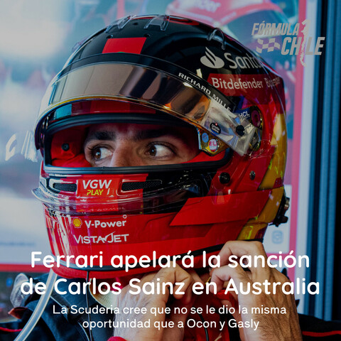 ⚠️La Scuderia Ferrari ha anunciado, ya varios días después, que apelará a la sanción recibida por Carlos Sainz en el Gran Premio de Australia que lo dejó fuera de la zona de puntos.