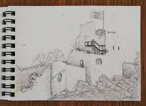 Voici donc deux croquis : le Château de Talmont, et la mer, entre la plage et le port. <3