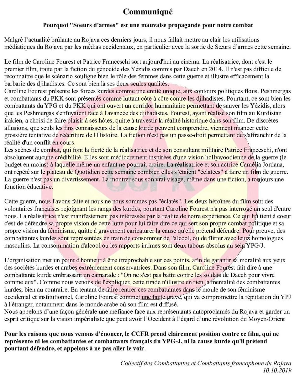 Communiqué : Pourquoi "sœurs d'armes" est une mauvaise propagande pour notre combat .
