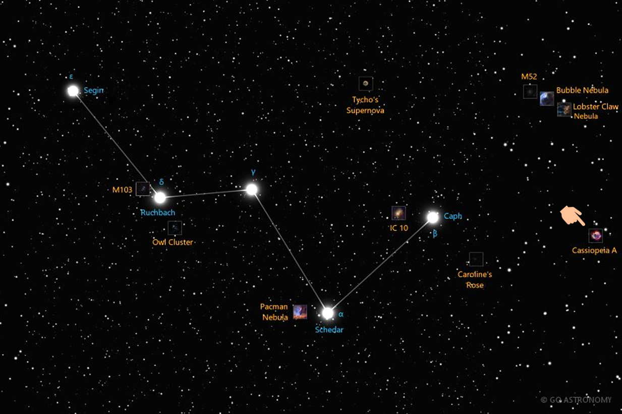 Where is Supernova remnant Cassiopeia A located in the night sky?