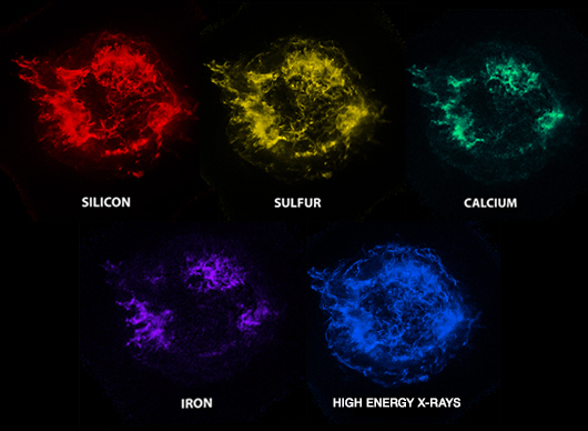 The X-ray images below from Chandra depict the location of various elements in Cas A.