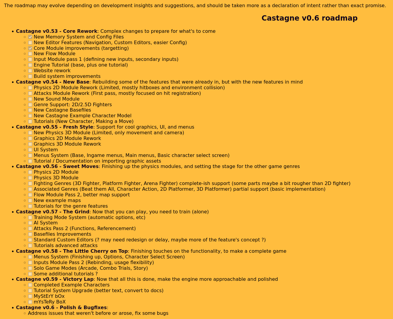 Little excerpt from the new #CastagneEngine website, detailing the roadmap for the next few months. Versions of note are: