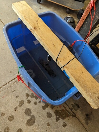 So I'm assembling an #electrolysis tank to 100% strip a pan and boot one up to a good state as an experiment. #science