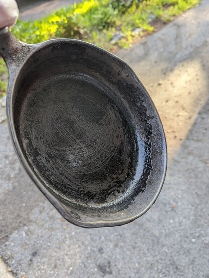 #castiron #electrolysis worked pretty well on the first pan. There were some crusts left that I could (and had to) pick off with my fingernail. A second, smaller pan was completely cleaned in a few hours and a wirewheel cleaned the futz.
