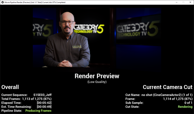 Once he's done, I'll get back to setting up cinematics for #Cat5TV S15E03. It's looking soooo good!