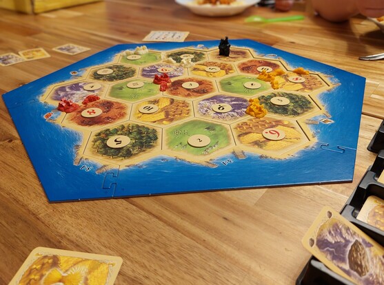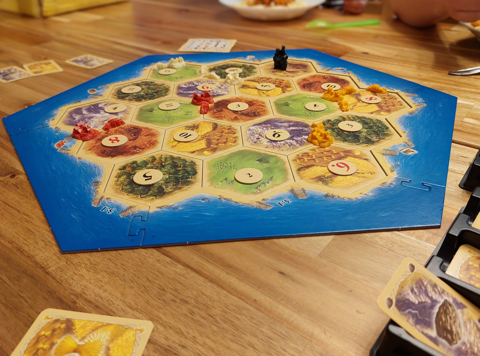 Wir sitzen heute bei der Wärme im (noch) kühlen Wohnzimmer und spielen #Brettspiele - aktuell unser selbstgebautes #Catan 🙃
