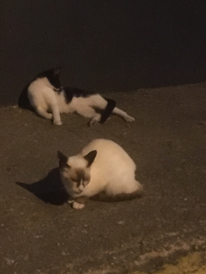@zbender @Nessiest there’s a bigly feral gathering around baker’s dozen strong at the end of my route. Hope I can get a group portrait. These are the chillest of the bunch, the Siamese genes? #CatClub #listeningclub #nofilter
