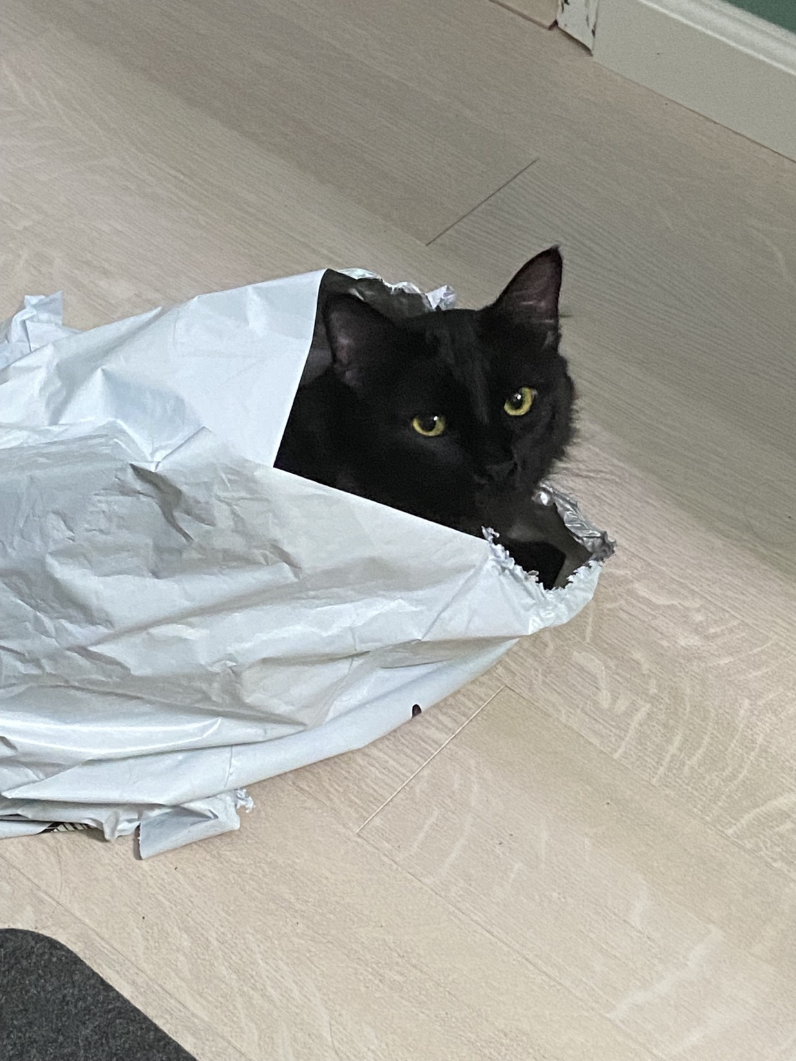 He's moved into a bag. #cats #catinabag #catsofmastodon #CaturdaySunday