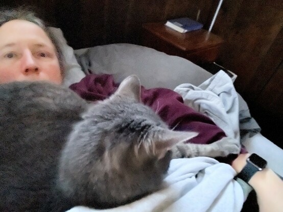 I am not to get up, nor to pick up a book, and definitely not to pet the other cat. #catstodon #catsOf