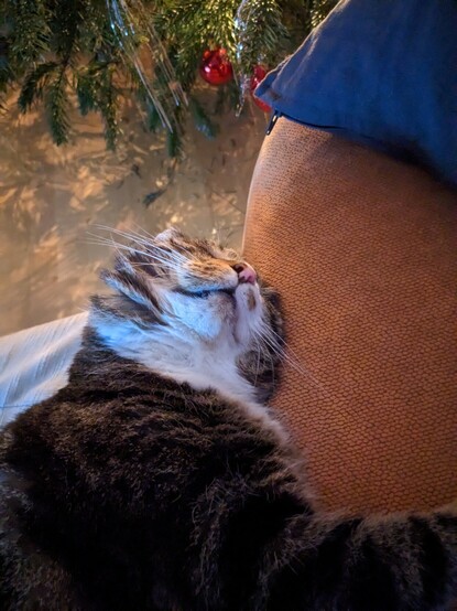 Schlaf Katze mit gemütlicher Beleuchtung vom Weihnachtsbaum für euch zum #caturay