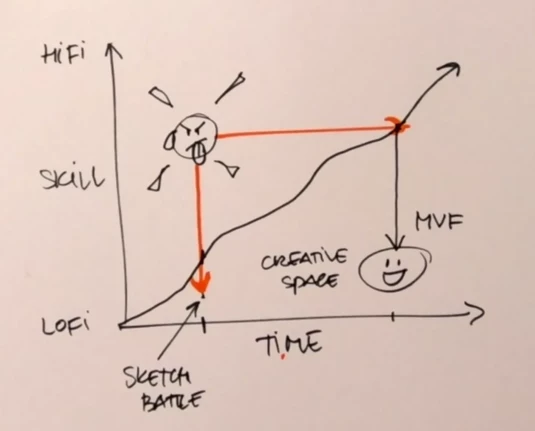 (re)Framing sketching as a way to learn (vs. make sth that looks good), and upskilling as a way to expand the space in which you feel creative (vs. frustrated) while creating and exploring.