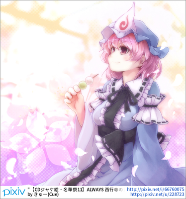 【CDジャケ絵・名華祭11】ALWAYS 西行寺の食う日 | きゅー(Cue) #pixiv #東方 #西行寺幽々子 #CDジャケット #おっぱい https://www.pixiv.net/member_illust.php?mode=medium&illust_id=66760075