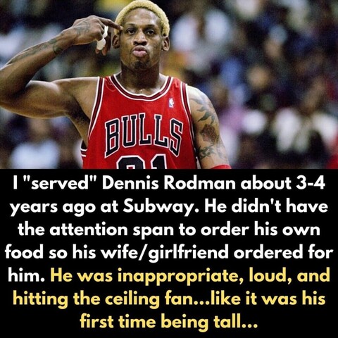 I'm reading about #celebrityencounters on Twitter and I found this person's description of #DennisRodman amusing 😜
