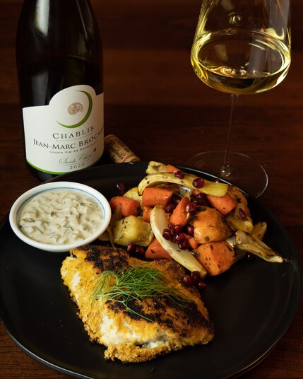#wine pairing is an aromatic #chablis offering mango, ginger, apple, lemon custard & crushed sea shell salinity.