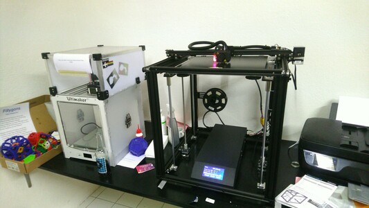 Here we go. @draemmli and I upgraded the Ultimaker 2 at the #ChaostreffBern to an Ultimaker 2+.
