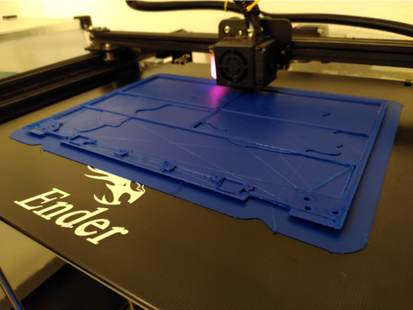 About 22 hours into my second attempt at 3d printing a custom @mntmn #reform 2 lid on my #creality #ender 5 plus at the #ChaostreffBern
