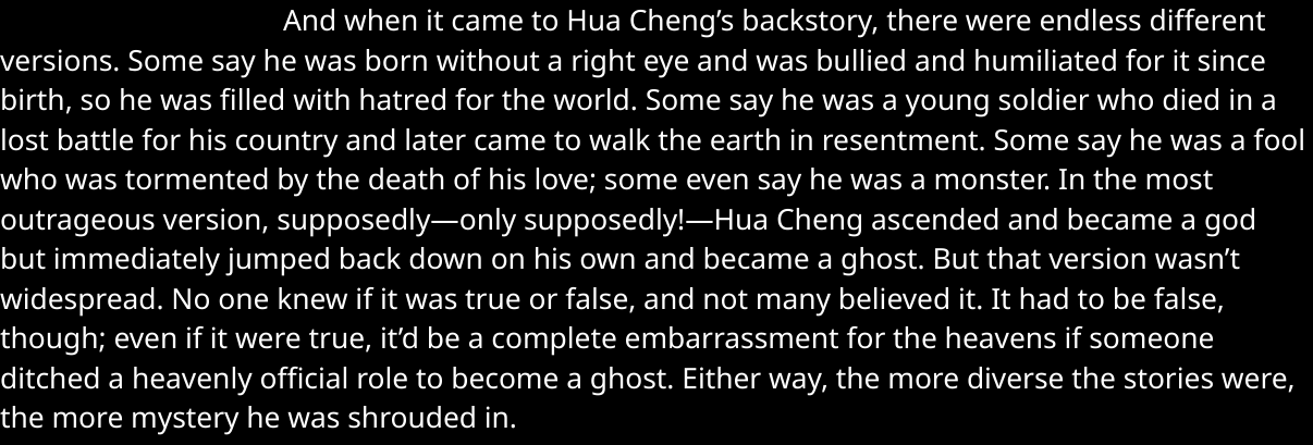 I love that stories about Hua Cheng are much more true than gods imagine xD