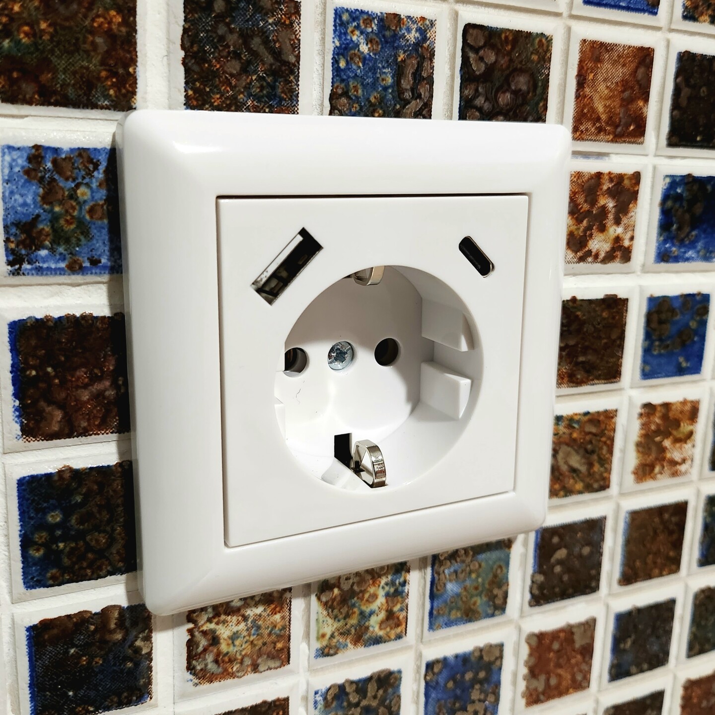 Replaced a problematic power outlet with this one from Amazon and it's pretty cool. I can now charge my iPad while watching videos and washing the dishes... without a charger! :blobcatbolb: