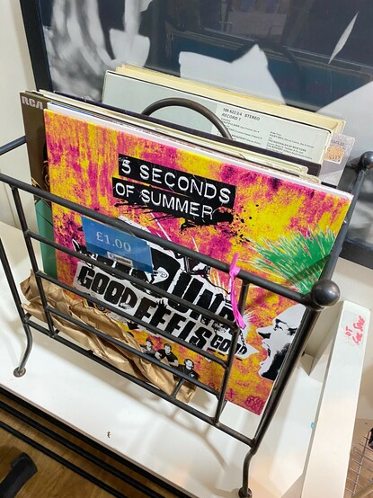 Six shops in 0.2mi, and came away with five books, two CDs, and a Yorkshire pudding tin!