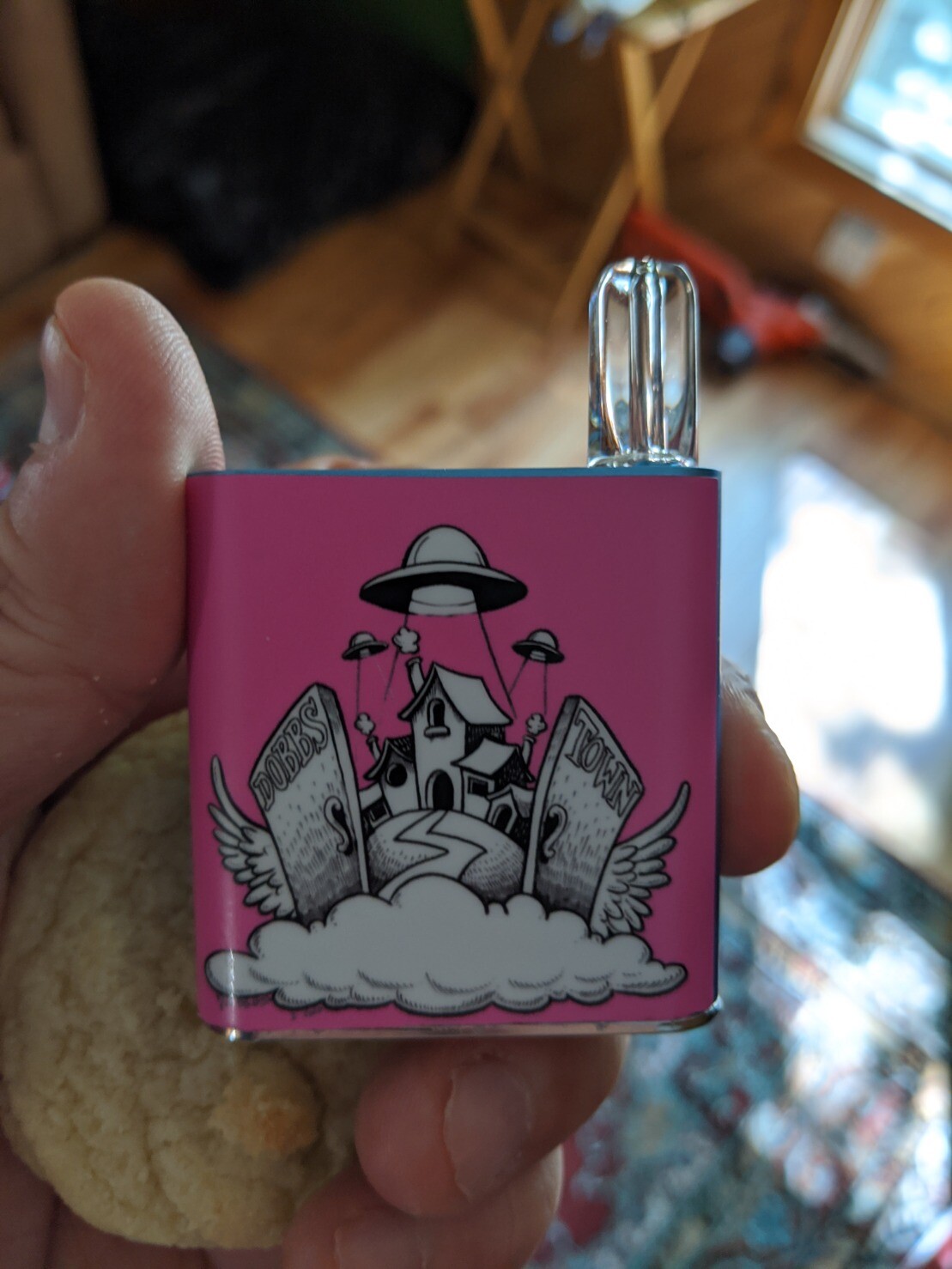 If J.R. "Bob" Dobbs doesn't exist, then why does this Dobbs.Town sticker fit perfectly on my electronic fropstick? #CheckmateAtheists