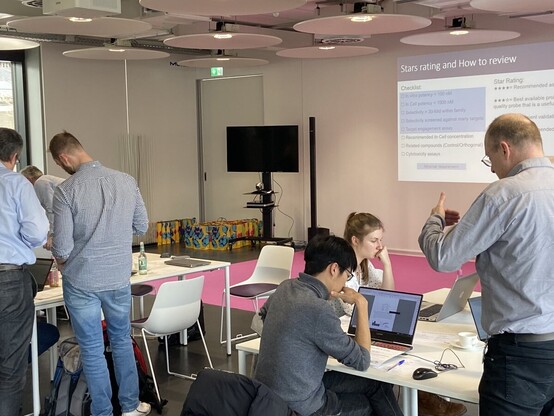 Mentors from @merckgroup in action. Students soaking up lessons from their years of experience in #chemicalprobe science.